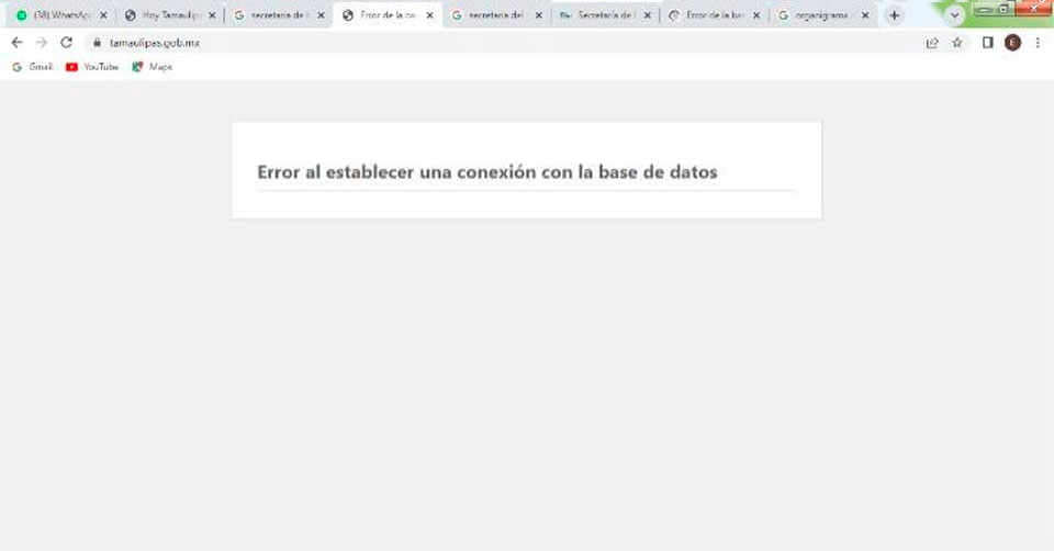 Durante una navegación para consultar datos oficiales, se observó que la página web que dirige a las secretarías y subsecretarías del Gobierno se encuentran inhabilitadas, arrojando al usuario la leyenda “Error al establecer una conexión con la base de datos”.