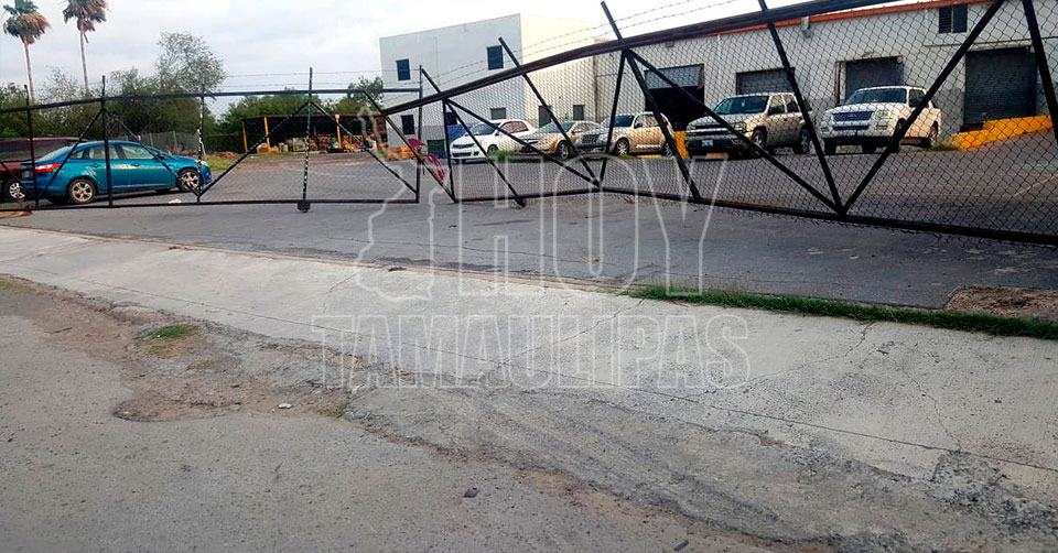 Daña portón de maquiladora con su auto y huye en Nuevo Laredo