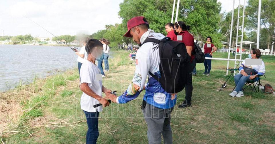Fue en las márgenes del río Bravo, en el centro recreativo La Playita, donde se realizó la práctica, en donde instructores les mostraron la forma de preparar la caña y la carnada, así como lanzar el anzuelo y sentir cuando pica un pez, y la manera de extraerlo del agua.