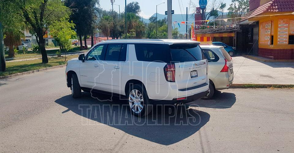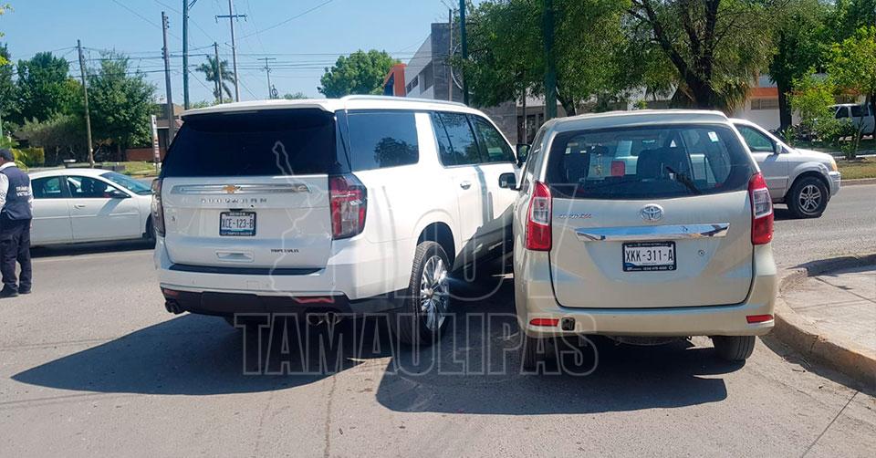 Ciudad Victoria, Tamaulipas.- El conductor de una Toyota terminó impactando a una Suburban último modelo en el centro de Ciudad Victoria, por querer ganarle el paso.