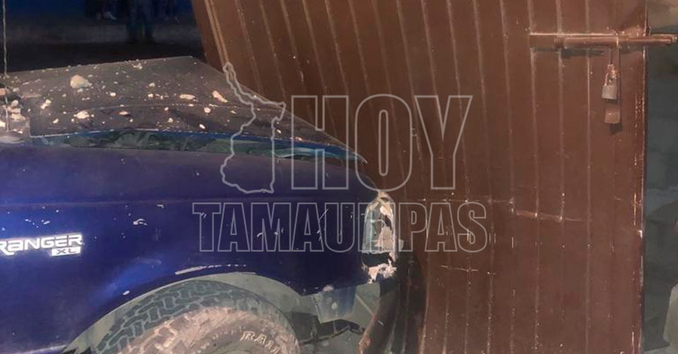 Jovencito estrelló su camioneta contra portón de una casa en Tula, Tamaulipas