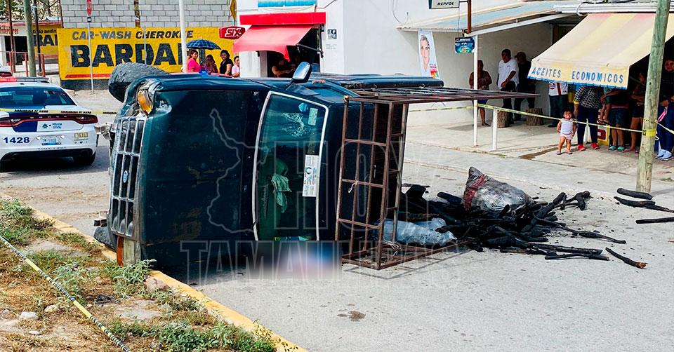 Muere aplastado por camioneta tras volcadura en Soto La Marina