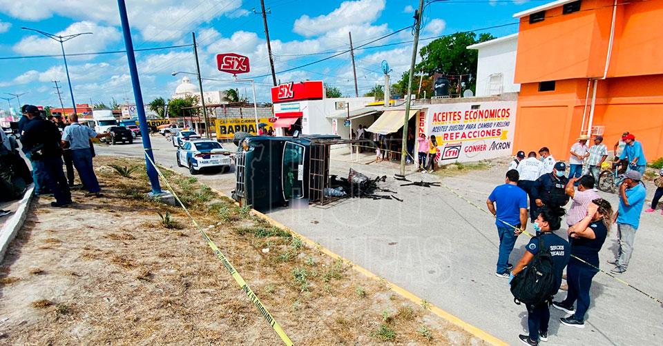 Soto La Marina, Tamaulipas. – Un hombre que conducía presuntamente bajo los influjos del alcohol perdió la vida esta tarde al ser aplastado por su camioneta, tras perder el control debido al exceso de velocidad y volcar, sobre la calle Obregón y carretera Costa Golfo.