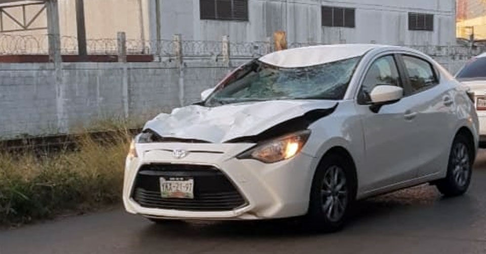 La unidad siniestrada es un carro Mazda color blanco con placas de circulación del Estado de Veracruz, mismo que presentaba daños en la parte frontal, así como en el toldo donde rebotó la humanidad del equino.