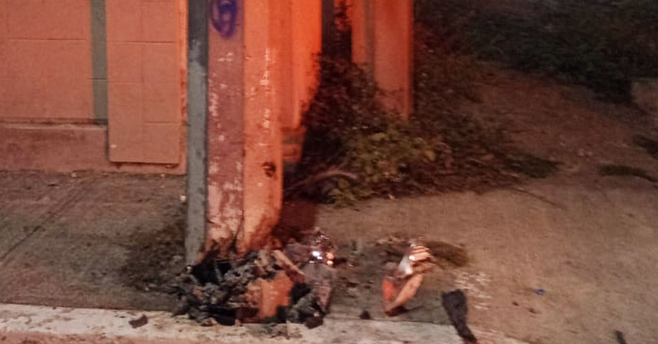 Tampico, Tamaulipas. - Un automóvil que presuntamente era conducido a exceso de velocidad por una persona en estado de ebriedad, se estrelló contra un poste de concreto de la Comisión Federal de Electricidad (CFE) en Tampico y fue abandonado por sus ocupantes.