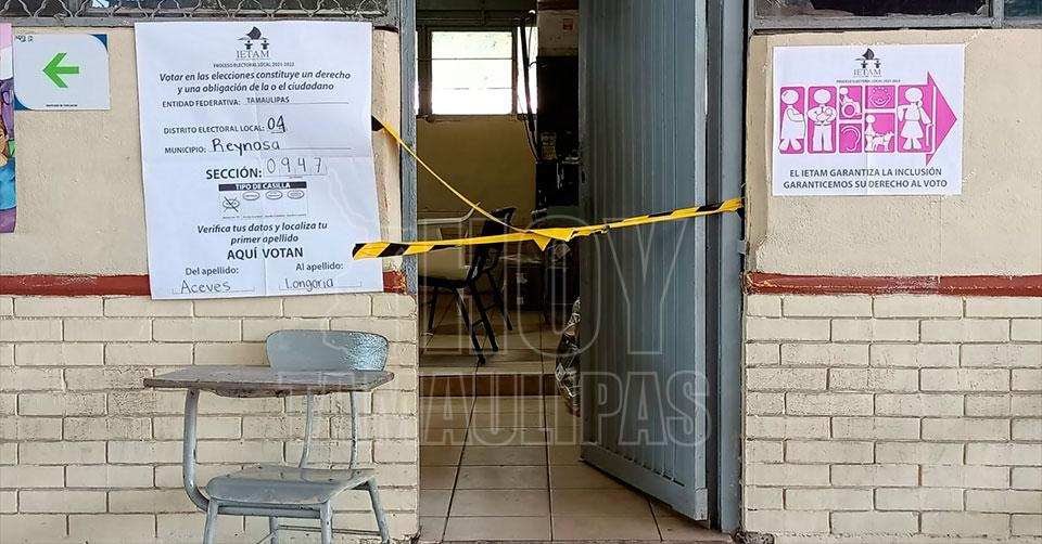 Reynosa, Tamaulipas. - Sujetos armados robaron la urna electoral de la casilla 0947 ubicada en la Secundaria número 3 Francisco J. Múgica de la colonia Ribereña.