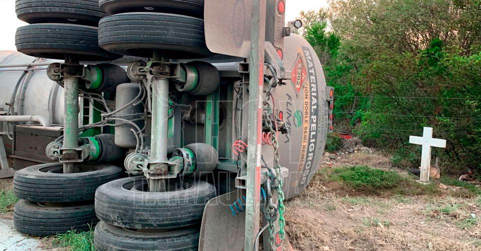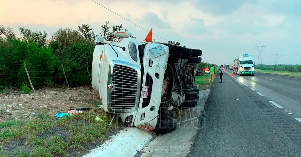 Ciudad Victoria, Tamaulipas. - Una persona lesionada y daños materiales de consideración dejó la volcadura de un tráiler en la carretera Victoria-Zaragoza, cerca de la capital de Tamaulipas.