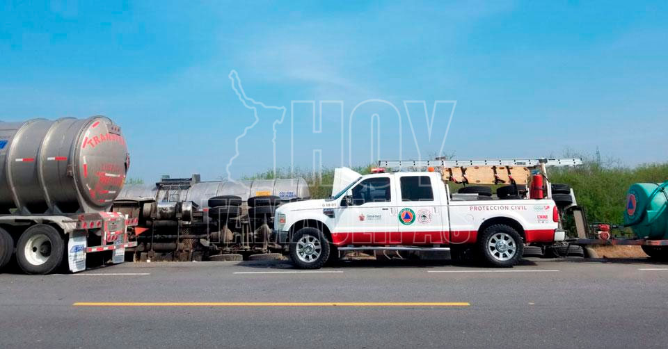 Chofer de pipa resulta lesionado tras volcadura en la Victoria-Matamoros