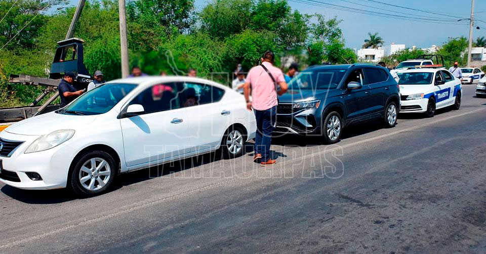 El percance vial se registró este mediodía en Libramiento Naciones Unidas y salida a Matamoros, frente a las instalaciones de la Fiscalía General de Justicia de Tamaulipas (FGJT), hasta donde arribaron agentes viales del municipio a tomar conocimiento.