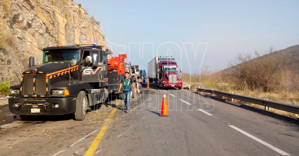 Personal de Protección Civil municipal de Jaumave se presentó en el lugar y brindó la atención pre hospitalaria al chofer del tractocamión que resultó lesionado.