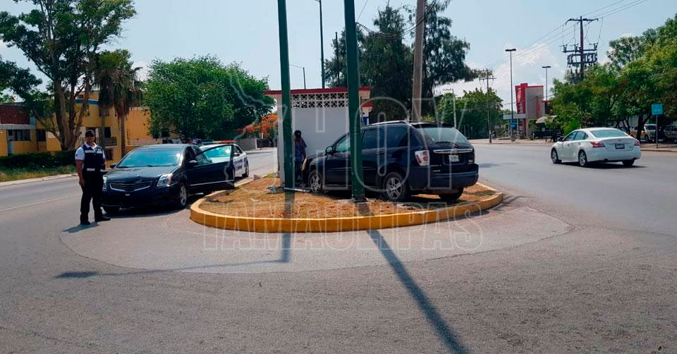Ciudad Victoria, Tamaulipas. - Una mujer que intentó esquivar una motocicleta que presuntamente se le atravesó, terminó subiéndose al camellón de un bulevar en Ciudad Victoria.