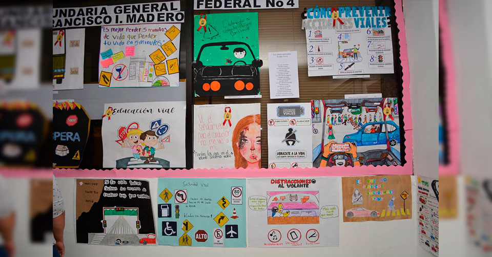 Nuevo Laredo, Tamaulipas. - Todo un éxito resultó el concurso de dibujo con motivo del Día de Educación Vial en el que estudiantes de la Secundaria Número 4 resultaron ganadoras de entre más de 700 proyectos presentados.