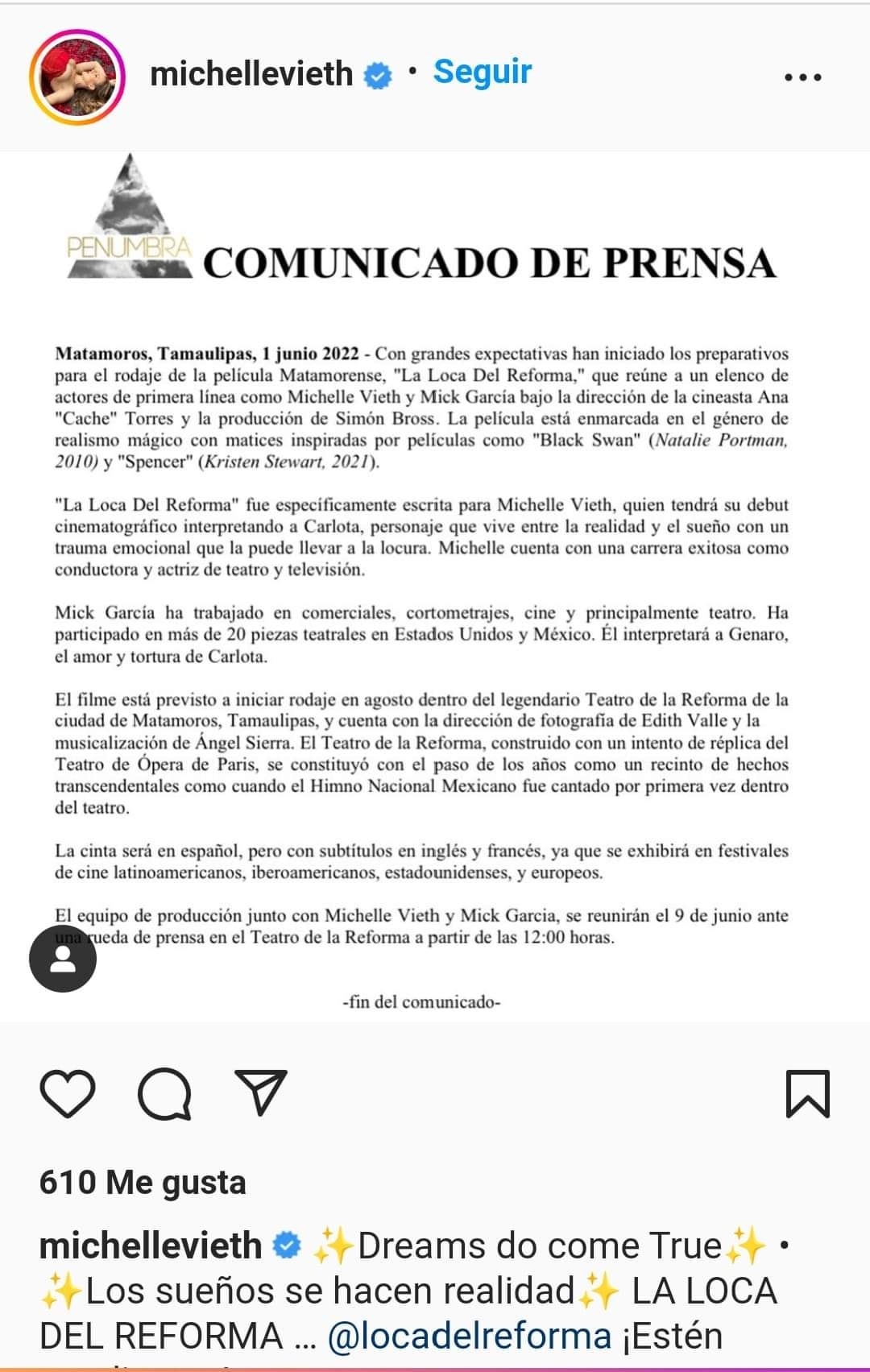 Matamoros, Tamaulipas. – La famosa actriz Michelle Vieth protagonizará una película que será grabada en Matamoros, misma que será proyectada a nivel internacional, dando a conocer el nombre de la ciudad en todo el mundo.