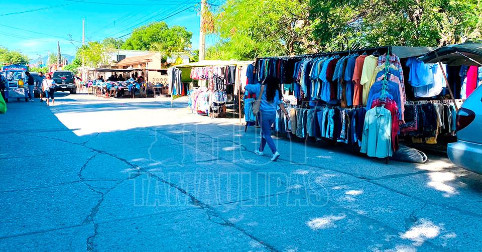 Ciudad Victoria, Tamaulipas. - Puestos de ropa, venta de diversos artículos, lotería, comida y un olor a carnitas y chicharrones suculentos son la característica del tianguis de la colonia López Mateos, sin embargo; a pesar de todos esos manjares los vendedores dicen que apenas sale para la comida y para lidiar con los gastos diarios.