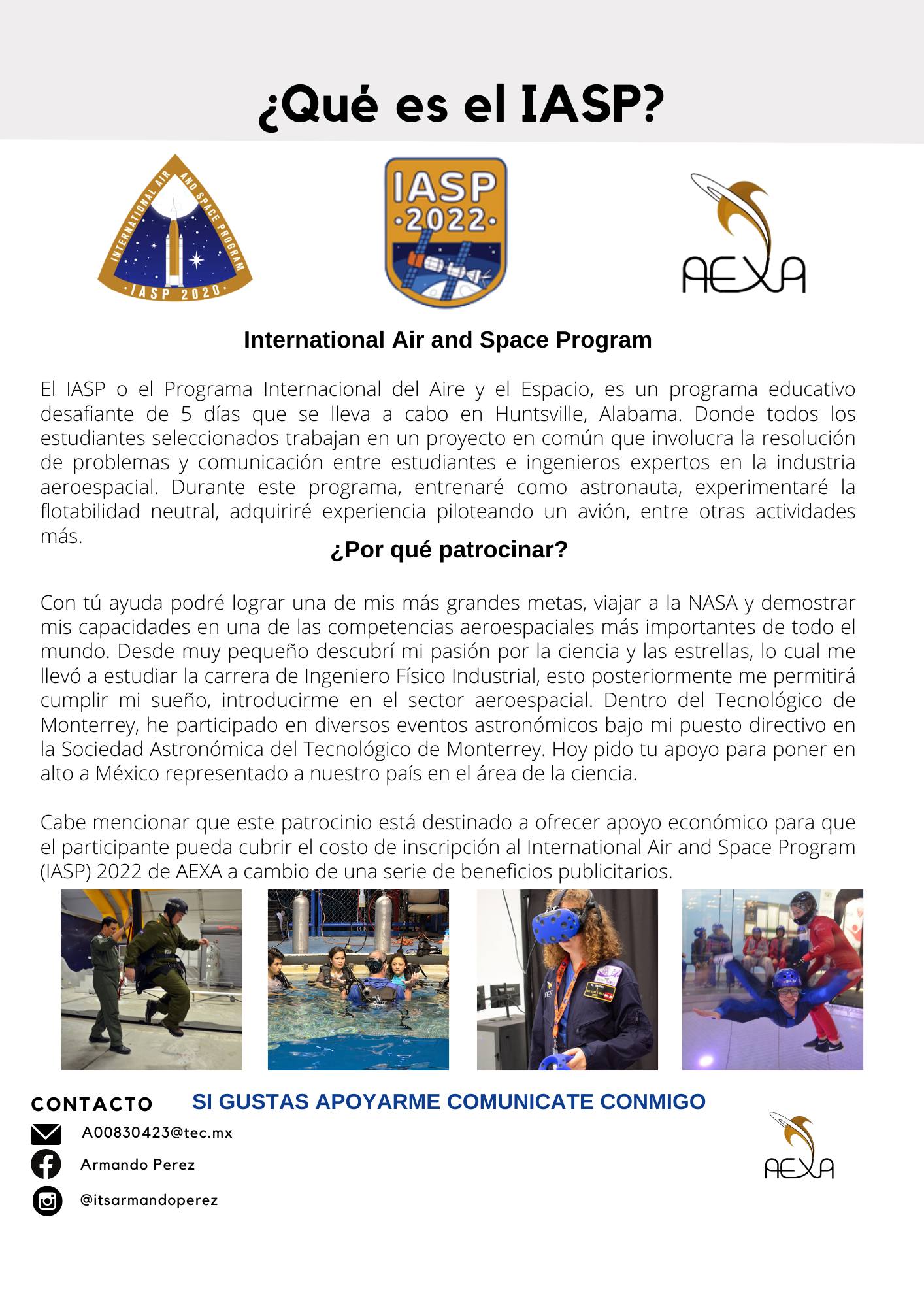 Reynosa, Tamaulipas. - Un joven originario de Reynosa fue seleccionado para representar a México en el International Air and Space Program 2022 de la NASA y para lograr llegar a cumplir su sueño está pidiendo el apoyo de los tamaulipecos para recaudar fondos y pagar los gastos de su viaje.