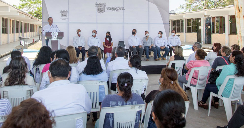 “En cada actividad que realicemos bajo esta techumbre, lo recordaremos señor Presidente, y no como un alcalde más, sino como el mejor alcalde Ciudad Madero, que con hechos nos viene a demostrar el servicio para mejorar la educación”.