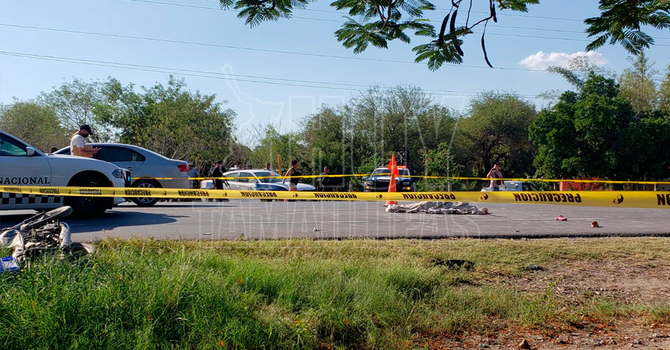 Güémez, Tamaulipas. - Una joven de 21 años de edad y su esposo de 24, ambos padres de tres menores hijos, perdieron la vida trágicamente esta tarde, tras ser embestida la motocicleta en la que viajaban por el conductor de una camioneta.