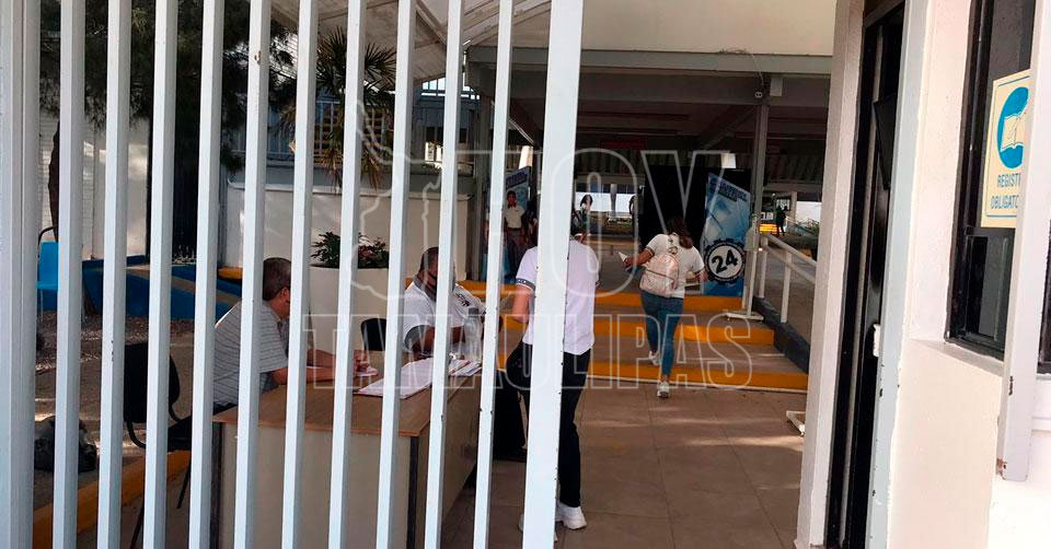 En el acceso, personal de seguridad verifica que los alumnos cuenten con su Carta Compromiso Regreso a Clases, emitido por el Comité Participativo de Salud Escolar del CBTis 24, firmado por el alumno y el padre o tutor.