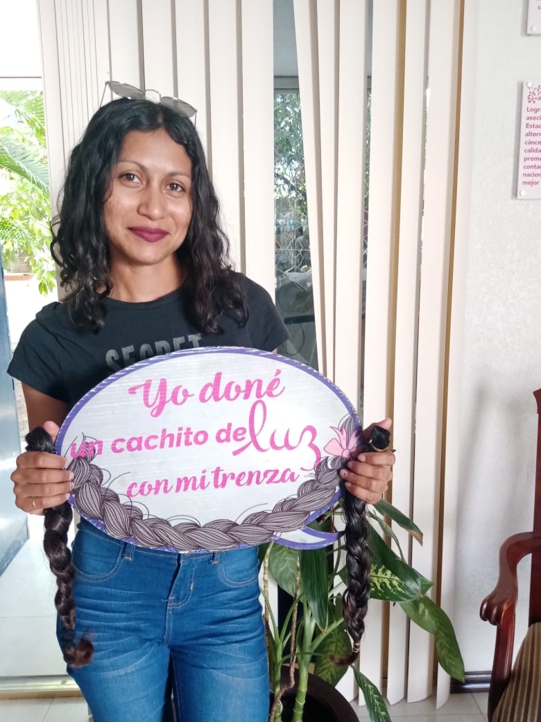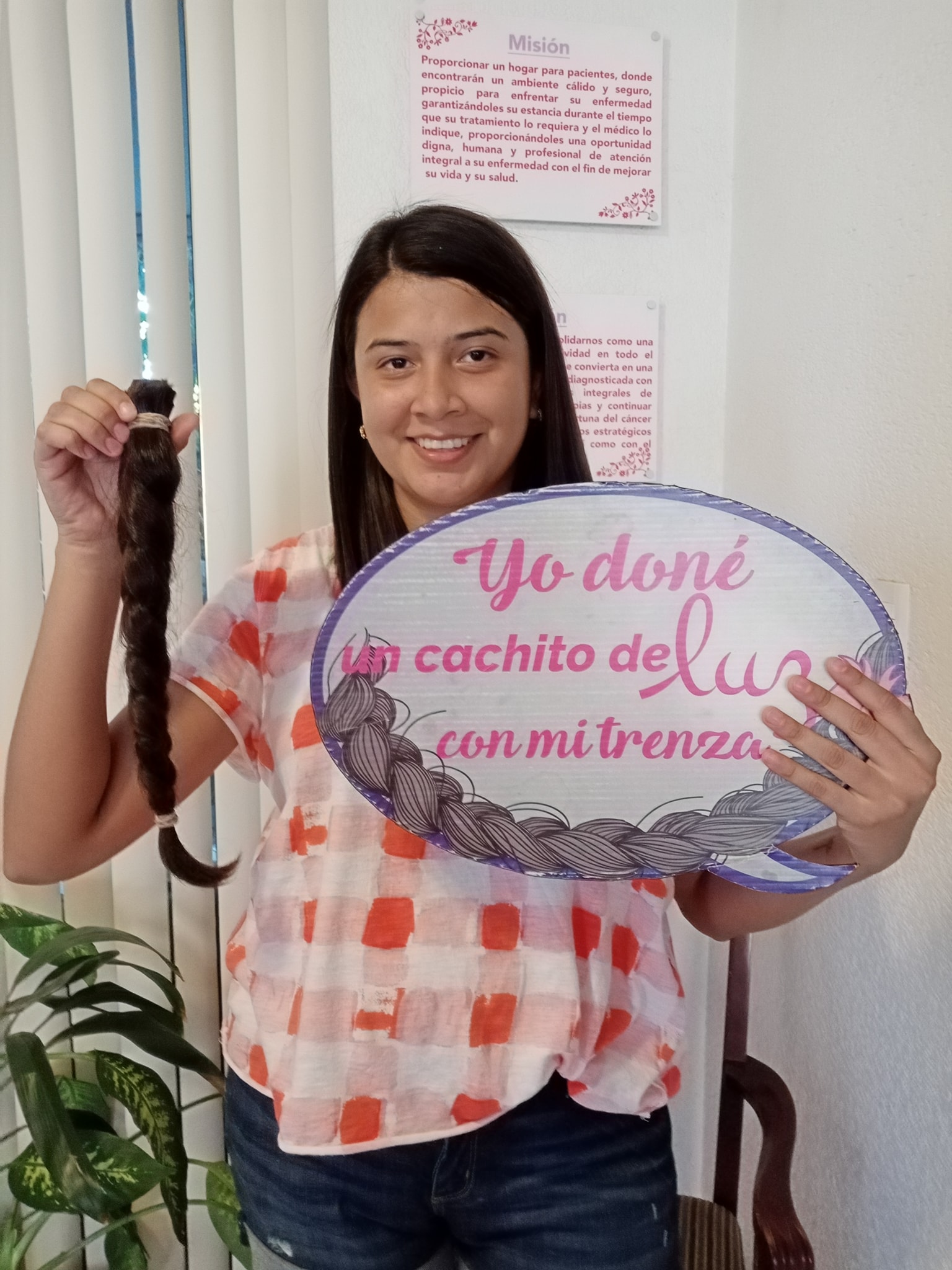 Leslie Hernández González se unió a la actividad, presentándose en la Fundación para hacer entrega de la trenza que seguramente hará feliz a una niña con este padecimiento, de igual manera, Leslie se ve sonriente y orgullosa en la fotografía que le tomaron.