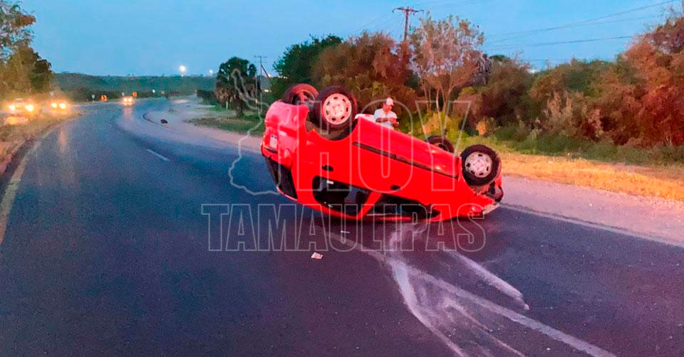 Ciudad Victoria, Tamaulipas. – Un médico empleado del Hospital Regional de Alta Especialidad (HRAE) de Ciudad Victoria resultó lesionado esta mañana al volcar el vehículo que conducía cuando se dirigía a casa, luego de una larga jornada laboral en el nosocomio.
