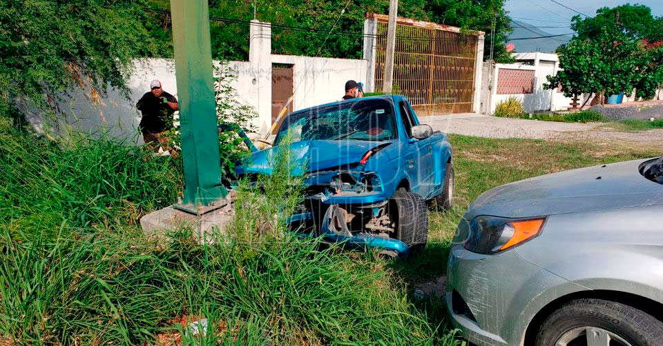 Dos lesionados al estrellarse camioneta contra luminaria en Victoria
