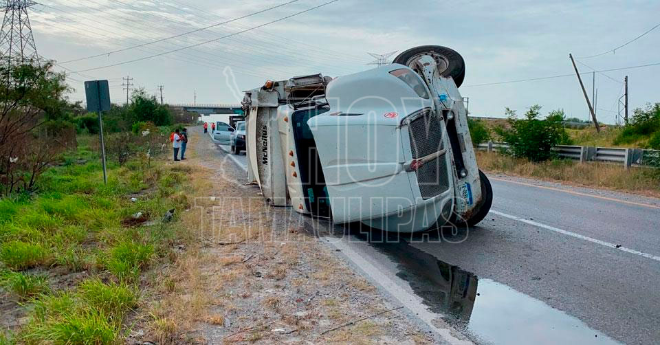 Tres lesionados al volcar camión recolector de basura en la Río Bravo-Reynosa