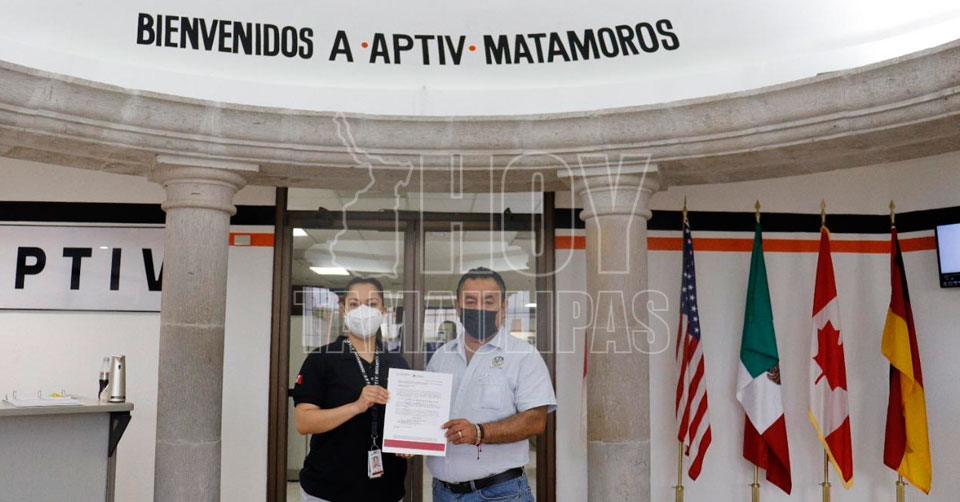 Matamoros, Tamaulipas. - El Sindicato de Jornaleros y Obreros Industriales y de la Industria Maquiladora (SJOIIM) que dirige Juan Villafuerte Morales y la Comisión del Trabajo realizaron la entrega de Constancia de Legitimación a los trabajadores y directivos de la empresa Aptiv, en cumplimiento a los lineamientos de la Ley Federal del Trabajo.