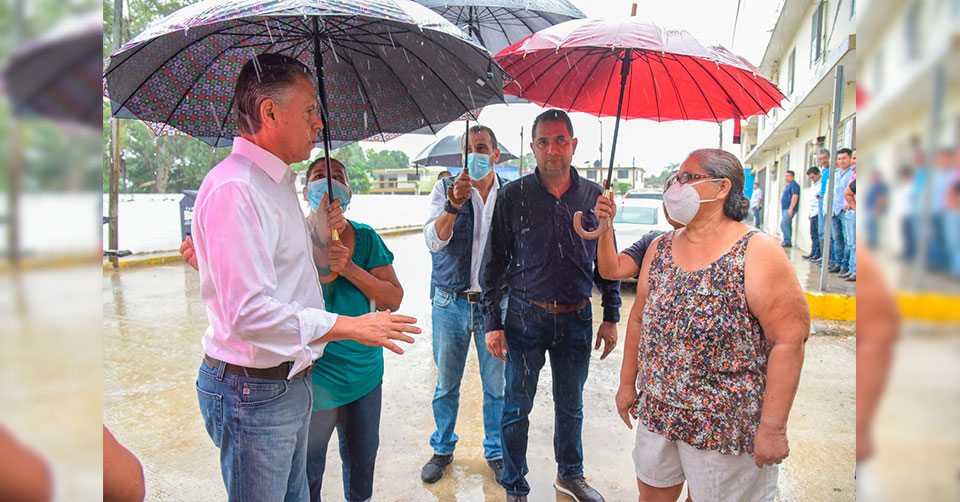La fuerte lluvia registrada la mañana de este martes no fue impedimento para que el jefe de la comuna acompañado de su equipo de trabajo, supervisara la colocación de estos contenedores en zonas estratégicas para facilitar a la ciudadanía el depósito de la basura doméstica.