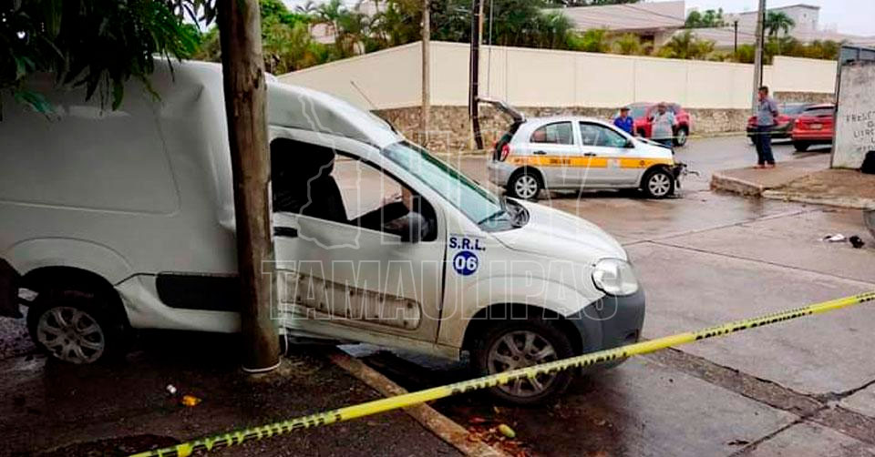 Tampico, Tamaulipas. - Dos personas lesionadas y cuantiosos daños materiales, dejó como saldo el fuerte choque entre un taxi y una camioneta, misma que salió proyectada contra un poste.