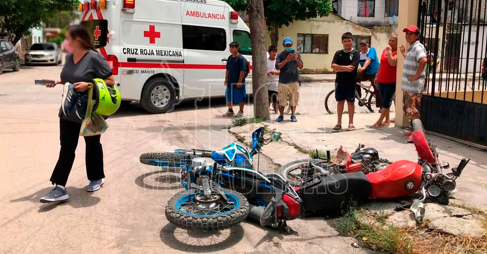 El Mante, Tamaulipas. – Dos motociclistas resultaron lesionados la tarde de ayer tras chocar las unidades en las que se desplazaban sobre las calles Zaragoza y Quintero de la zona centro de El Mante.