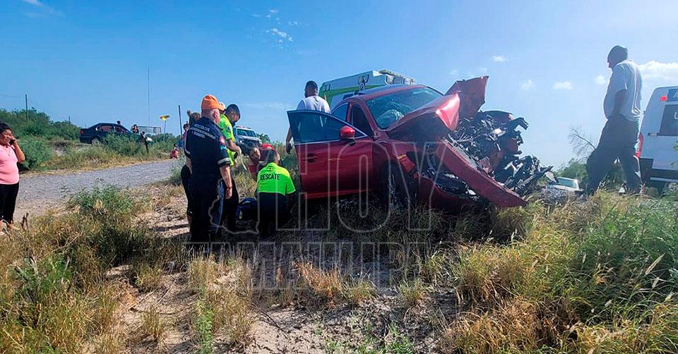 Nuevo Laredo, Tamaulipas. - Tres personas, una de ellas menor de edad, resultaron heridas al registrarse un aparatoso accidente ocurrido en el Bulevar Colosio Norponiente, en el extremo poniente de Nuevo Laredo, provocado por un conductor que viajaba a exceso de velocidad.