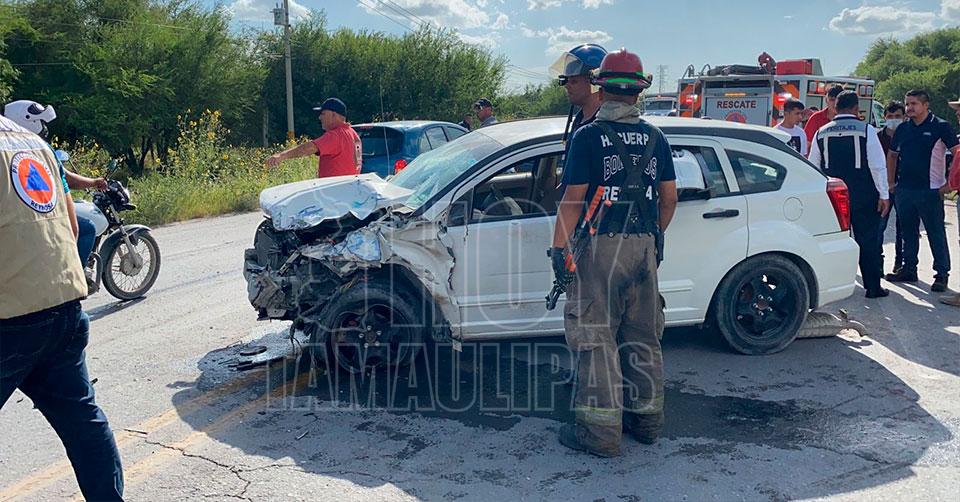 Reynosa, Tamaulipas. – Un fuerte accidente carretero dejó como saldo al menos tres personas lesionadas esta tarde, en la carretera La Ribereña, a la altura del Hospital Christus Muguerza.