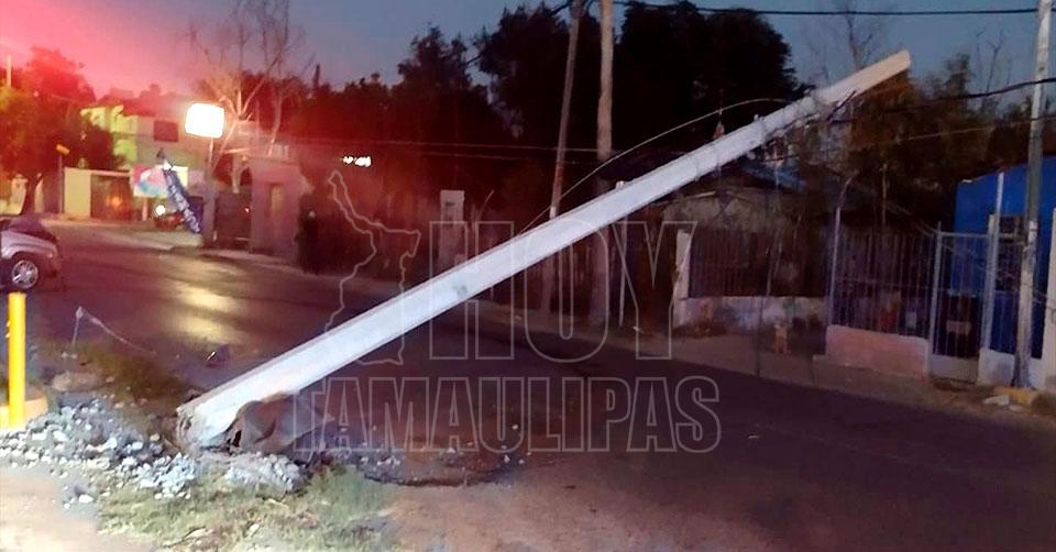 Huye tras estamparse contra poste de CFE en Nuevo Laredo