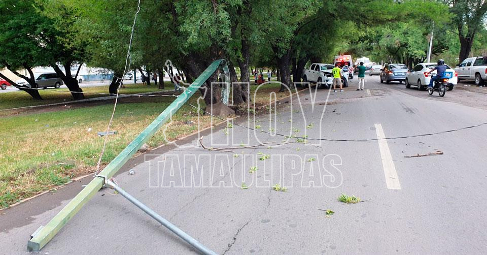 Ciudad Victoria, Tamaulipas. - Tres jóvenes en aparente estado de ebriedad resultaron lesionados esta mañana tras estrellar la camioneta en la que viajaban contra una luminaria en el Bulevar Fidel Velázquez y Olivia Ramírez en la capital de Tamaulipas.