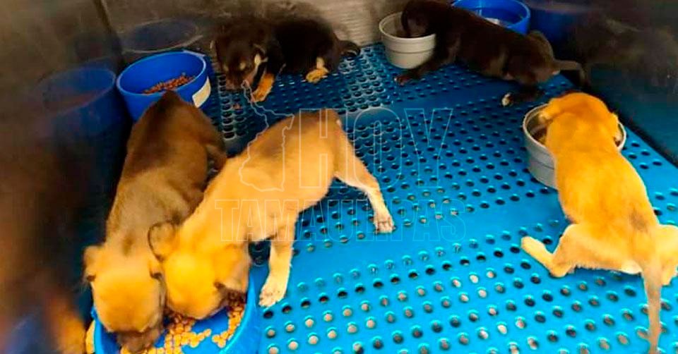 Abandonan a cinco perritos dentro de una caja en tienda de Nuevo Laredo