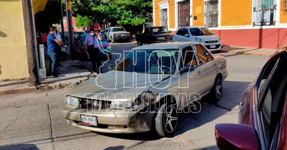 Conductora se pasa alto y provoca fuerte choque en el centro de Ciudad Victoria