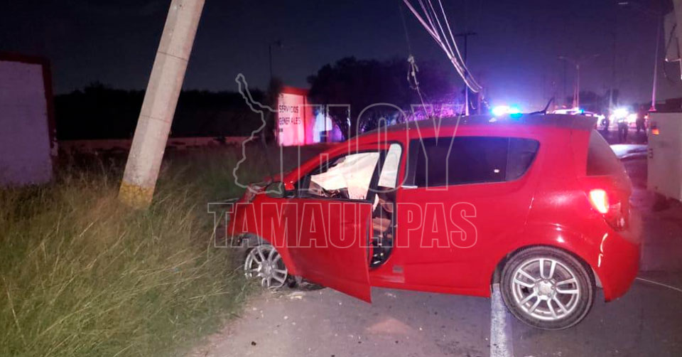 Matamoros, Tamaulipas. - Una mujer que manejaba sobre la avenida Lauro Villar no vio el camellón central ubicado en dicha avenida a la altura de la entrada al Fraccionamiento Magnolias y chocó contra el cordón para luego perder el control y se terminar estrellándose contra un poste de la Comisión Federal de Electricidad (CFE).