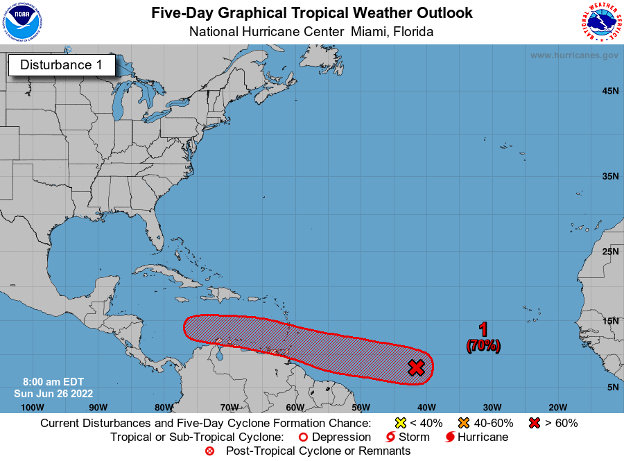 Se trata del disturbio tropical número 94-L, al que se le ha dado un 70 por ciento de probabilidad ciclónica en los próximos cinco días.