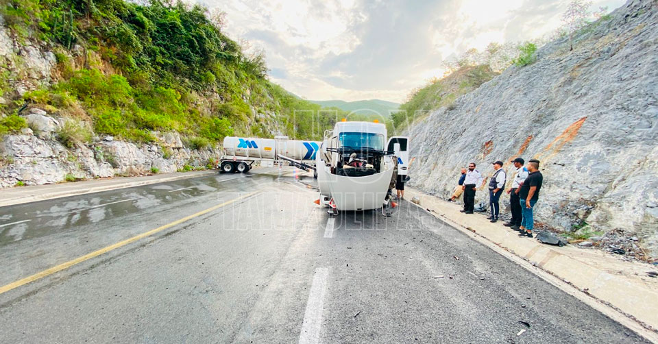 Presuntamente el exceso de velocidad y la falta de precaución provocó que el chofer perdiera el control al volante terminando por derrapar, hasta impactarse el tractor contra el talud de la sierra.