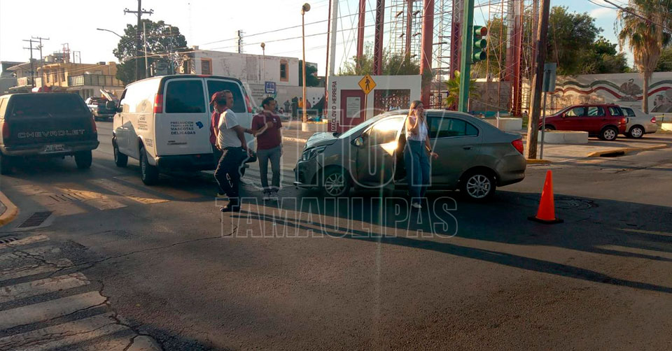 Nuevo Laredo, Tamaulipas. — El conductor de un vehículo habilitado para traslados urgentes de mascotas provocó un accidente vehicular en un crucero de la colonia Juárez, en Nuevo Laredo, al omitir la luz roja del semáforo encandilado por la luz del sol.