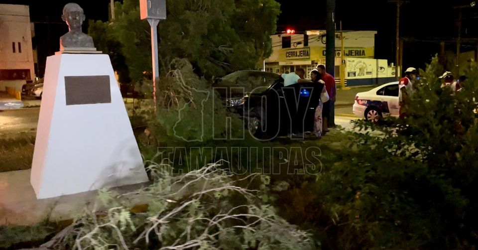 Ciudad Victoria, Tamaulipas. - Un conductor en estado de ebriedad perdió el control de su vehículo y derrapó hasta estrellarse con un árbol, al que derribó y convirtió su auto en chatarra.