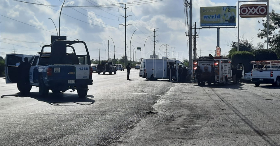 Reynosa, Tamaulipas. - Al menos tres guardias de seguridad y una custodia de la Policía Estatal resultaron lesionados esta mañana al verse involucrados en un percance vial, en el libramiento Monterrey- Matamoros, a la altura de la Avenida Mil Cumbres, en los carriles de poniente a oriente.