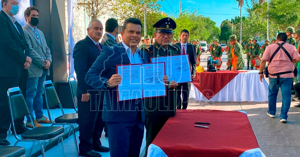 El evento se desarrolló en las afueras de la Presidencia Municipal de Victoria, en donde estuvieron presentes el alcalde Eduardo Abraham Gattás Báez, el comandante de la 48a Zona Militar, general de brigada Elpidio Canales, entre diversos representantes de cámaras y sectores empresariales.