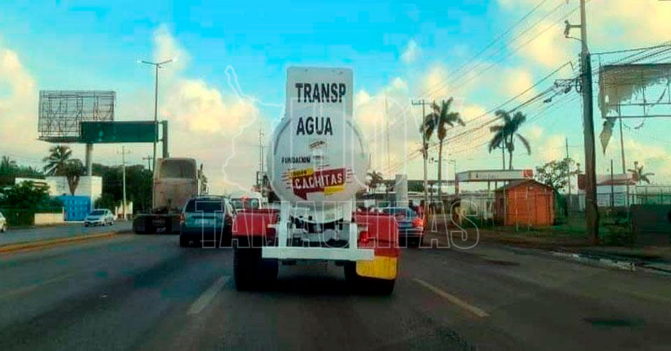 Gilberto Gallegos precisó que el apoyo de la Fundación "Equipo Cachitas" de Tampico Alto, Veracruz, que preside Adrián Domínguez Rangel y quien fue el encargado de donar una pipa con más de 20 mil litros de agua purificada.