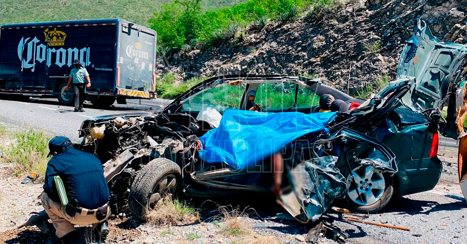 Jaumave, Tamaulipas. - Un hombre de 28 años de edad perdió la vida trágicamente esta mañana tras chocar su auto contra un camión cervecero en el kilómetro 101 de la carretera Tula-Victoria.