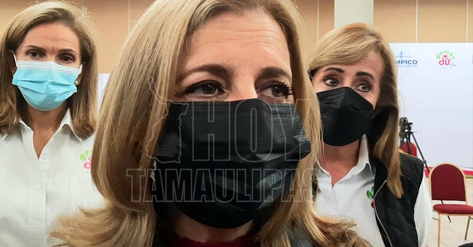 Tampico, Tamaulipas. - Ante el incremento de casos de contagios del virus Covid-19, donde nuevamente Tampico registra los índices más críticos, la presidenta del Sistema para el Desarrollo Integral de la Familia (DIF) Aída Feres de Nader, llamó a la comunidad a protegerse responsablemente, a salir lo menos de casa y en esa protección acudir a los módulos donde se están aplicando las dosis anti Coronavirus.