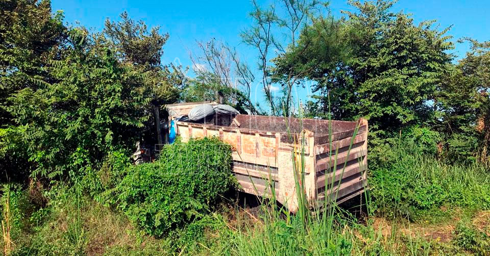 El Mante, Tamaulipas. – El chofer de un camión materialista se llevó el susto de vida tras perder el control del camión y terminar entre el monte la tarde de ayer lunes en kilómetro 100 de la carretera Mante-Victoria, a la altura del Poblado El Limón.