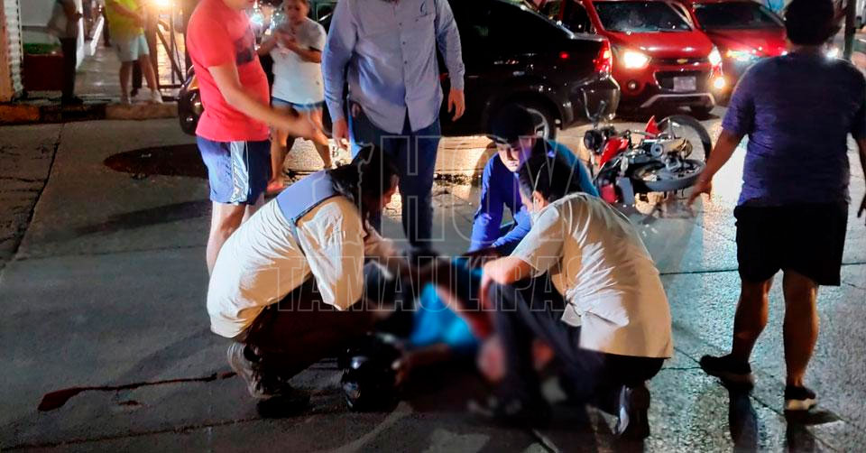 El accidente vial se registró durante la noche de ayer martes sobre la transitada Avenida Universidad, a la altura de la intersección con la calle 10, frente a la tienda Arteli en Tampico.