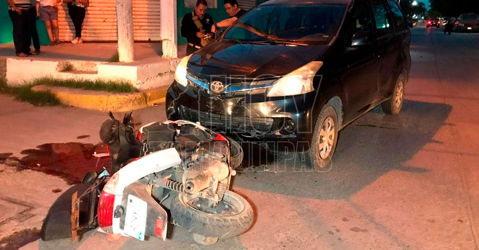 El presunto responsable conducía una motoneta Italika cuando se fue derecho a una camioneta Toyota Avanza, impactándose de frente y resultando lesionado.