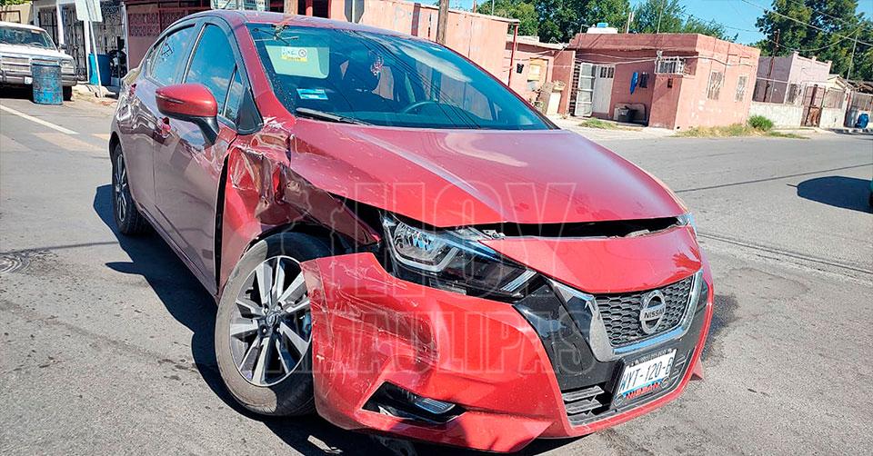 El percance se registró en el crucero de la avenida Leona Vicario y Perú, y lo provocó Yriam, de 34 años, quien conducía un automóvil Nissan Versa modelo 2020.